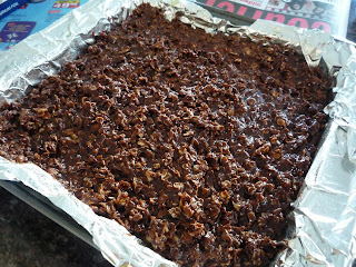 The last recipe I tried today was for these No-Bake Chocolate Peanut Butter Oat Squares. They were so delicious! I got a little zealous and stirred the chocolate chips in to the hot mix instead of pressing them on top like I was supposed to, so the recipe turned out extra chocolately which isn't necessarily a bad thing, but not as pretty! They were so yummy right out of the freezer with a cup of tea! Also took minutes to get together, a great recipe for the next time you want to take a yummy treat to a friend's house for tea!